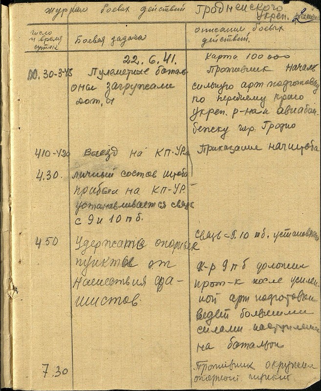 Достаточно интересный документ о первых днях войны - Журнал боевых действий 68-го Гродненского Укреплённого Района. Размещаю только страницы журнала с 22 по 24 июня 1941 года. Особый интерес вызывают описания боёв 22-23 июня в районе Гродно. Дальнейшее содержание Журнала - описание отступления до Могилёва и участие в строительстве Могилёвского Укреплённого Района, и дальнейшее отступление к Вязьме и участие в строительстве Вязьмского Укреплённого Района.